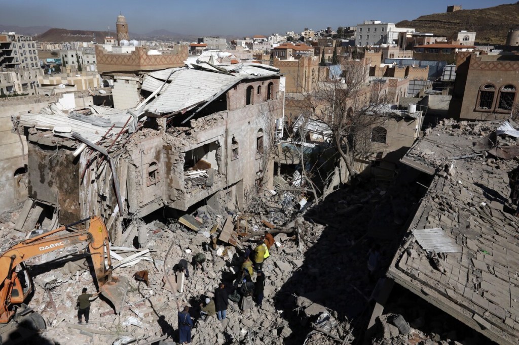 An airstrike killed 14 people in Sanaa during strikes across the city launched by the Saudi-led coalition fighting the Houthi, group officials said Jan. 18 2022