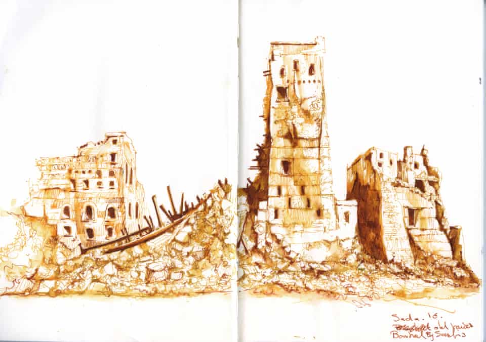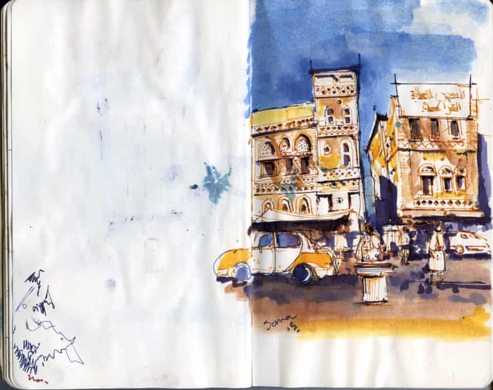‘This was drawn before the capital was bombed. It contrasts the chaos you often see in the streets of a Middle Eastern city with the delicacy and beauty of the architecture. I started working on a bigger panorama of the old city, but three of the buildings are missing now. Some of the most beautiful buildings in Sana’a have been destroyed by Saudi airstrikes.’