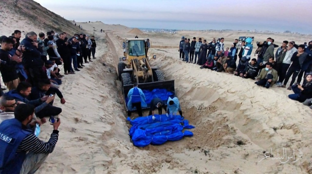 Gaza authorities buried 80 unidentified Palestinians on Tuesday whose bodies were handed over by Israel through the Karem al Salem border crossing, the health ministry said. The bodies were collected from the northern part of the Gaza Strip. They were buried in a long ditch at a Rafah cemetery in the south.