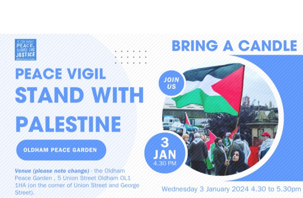 Wednesday 3 January 2024 – 4.30 to 5.30pmOldham Peace Gardens, 5 Union Street, Oldham OL1 1HA