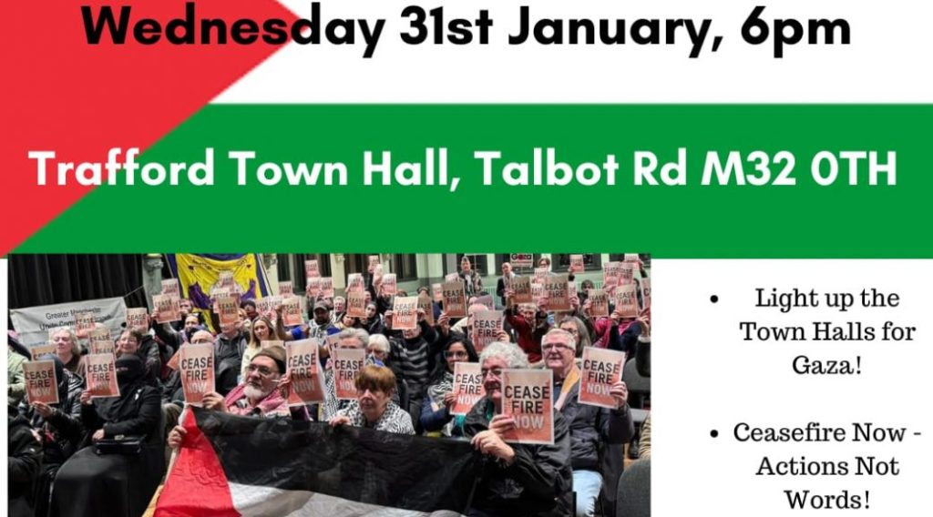 “Over 500 signatures were collected on a petition demanding equal respect for Palestinian lives.” Join the struggle at the Trafford Town Hall.