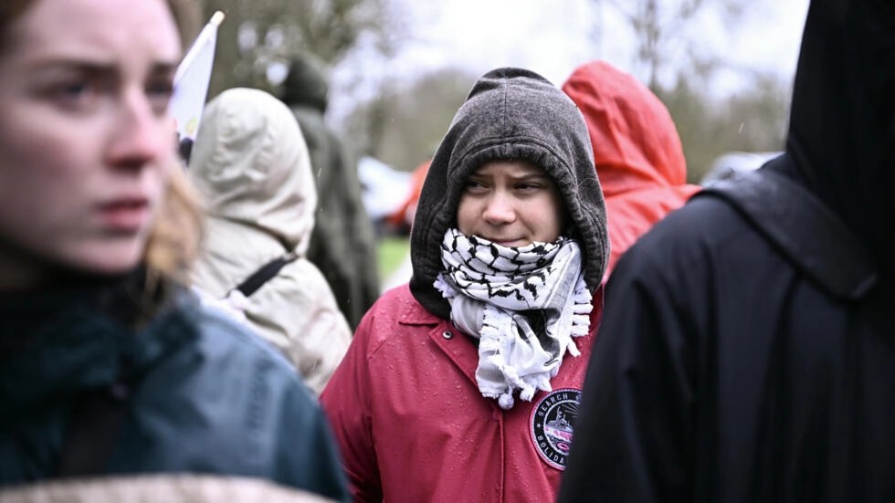 Greta for the environment and for Gaza, wearing a Palestinian keffiyeh