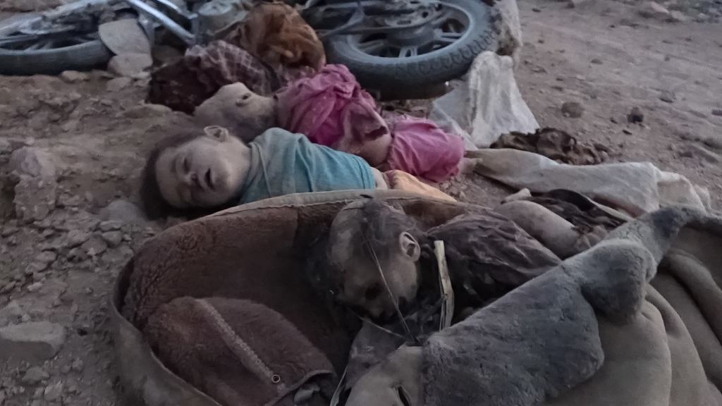 55 residents were killed, and a further nine injured. Among the dead were 35 children and 11 women. They recovered US bomb fragments on site of the airstrikes.