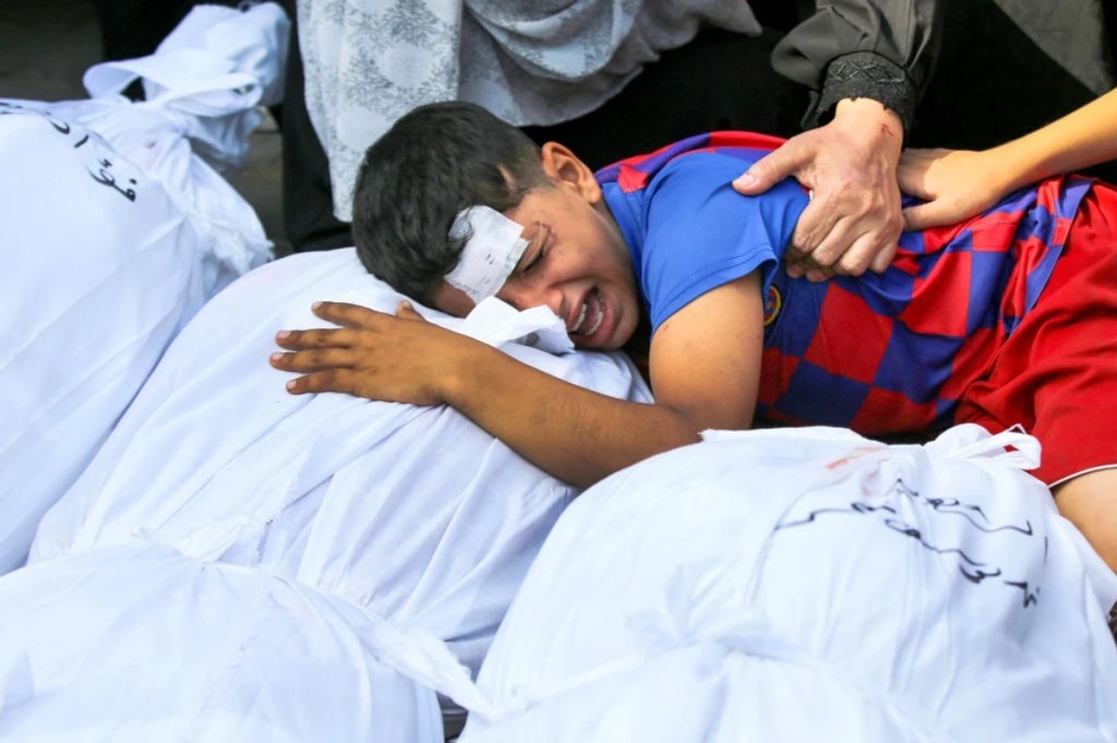 At least seven people were killed, and fires broke out as Israeli forces bombed tents in Gaza’s al-Mawasi ‘humanitarian zone’.