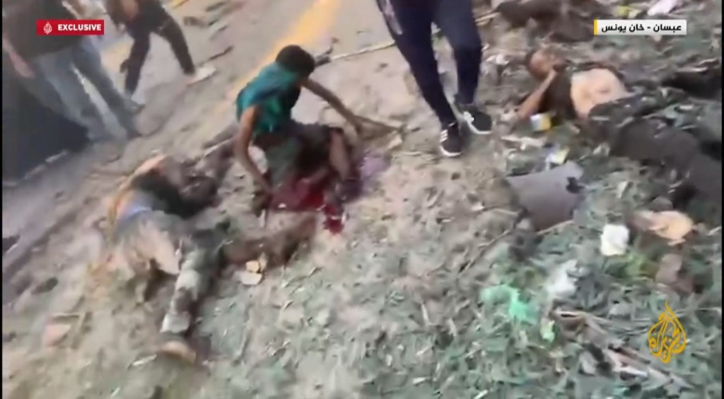 At least 29 Palestinians have been killed and dozens wounded in an Israeli air strike on a camp for displaced people outside the Al-Awda school, which houses displaced people from the eastern villages of Khan Younis.