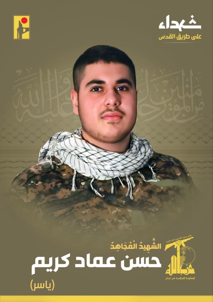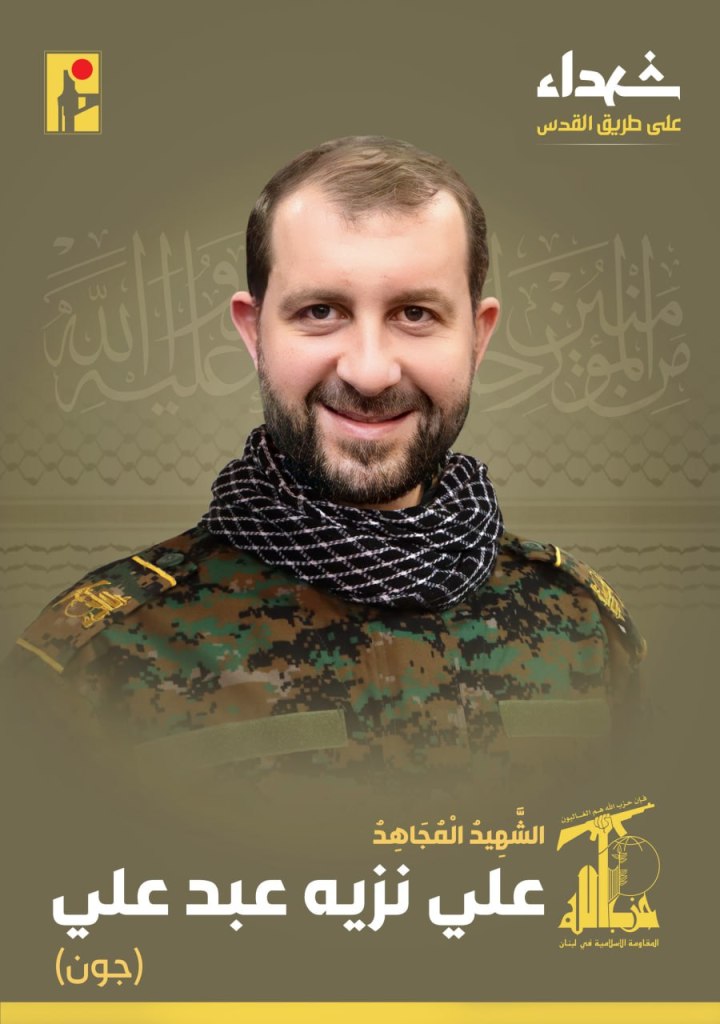 The funeral of Commander Fouad Ali Shukr in Beirut, Al ManarWith great pride and honor, the Islamic Resistance exalts the martyr fighter Abbas Fadi Hijazi, “Abbas Al-Hor,” born in 1995 from the town of Majdal Selem in southern Lebanon, who rose as a martyr on the road to Al-Quds. https://t.me/PalestineResist/50588With great pride and honor, the Islamic Resistance exalts the martyr fighter Abbas Muhammad Salami “Zain al-Abidin,” born in 1991 from the town of Khirbet Selem and resident of the town of Shaqra in southern Lebanon, who rose as a martyr on the road to Al-Quds. https://t.me/PalestineResist/50596With great pride and honor, the Islamic Resistance exalts the martyr fighter Hassan Hussein Malek “Badr”, born in 1995 from the town of Beit Leif in southern Lebanon, who rose as a martyr on the road to Al-Quds. https://t.me/PalestineResist/50721Fouad Ali Shukr, “Sayyed Mohsen” or Hajj Mohsen was assassinated in an Israeli strike on his home in the Southern Suburb of Beirut on Tuesday, 30 July 2024. The airstrikes demolished buildings, killing 4 civilians and injuring 74.With great pride and honor, the Islamic Resistance exalts the martyr fighter Ali Nazih Abdul Ali “Joon”, born in 1984 from the town of Aytit in southern Lebanon, who rose as a martyr on the road to Al-Quds. https://t.me/PalestineResist/51329With great pride and honor, the Islamic Resistance exalts the martyr fighter Hassan Imad Karim “Yasser,” born in 2007 from the town of Deir Siryan in southern Lebanon, who rose as a martyr on the road to Al-Quds. https://t.me/PalestineResist/51427With great pride and honor, the Islamic Resistance exalts the martyr fighter Ali Mustafa Amro “Abu Al-Ahrar,” born in 1985 in the town of Al-Muaysara in Mount Lebanon, who rose as a martyr on the road to Al-Quds. https://t.me/PalestineResist/51560