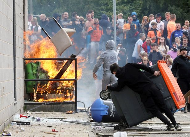 In the attack on the Holiday Inn Express, rioters threw wood and bottles at the police, chanting “get them out,” targeting the 130 asylum seekers in the hotel.