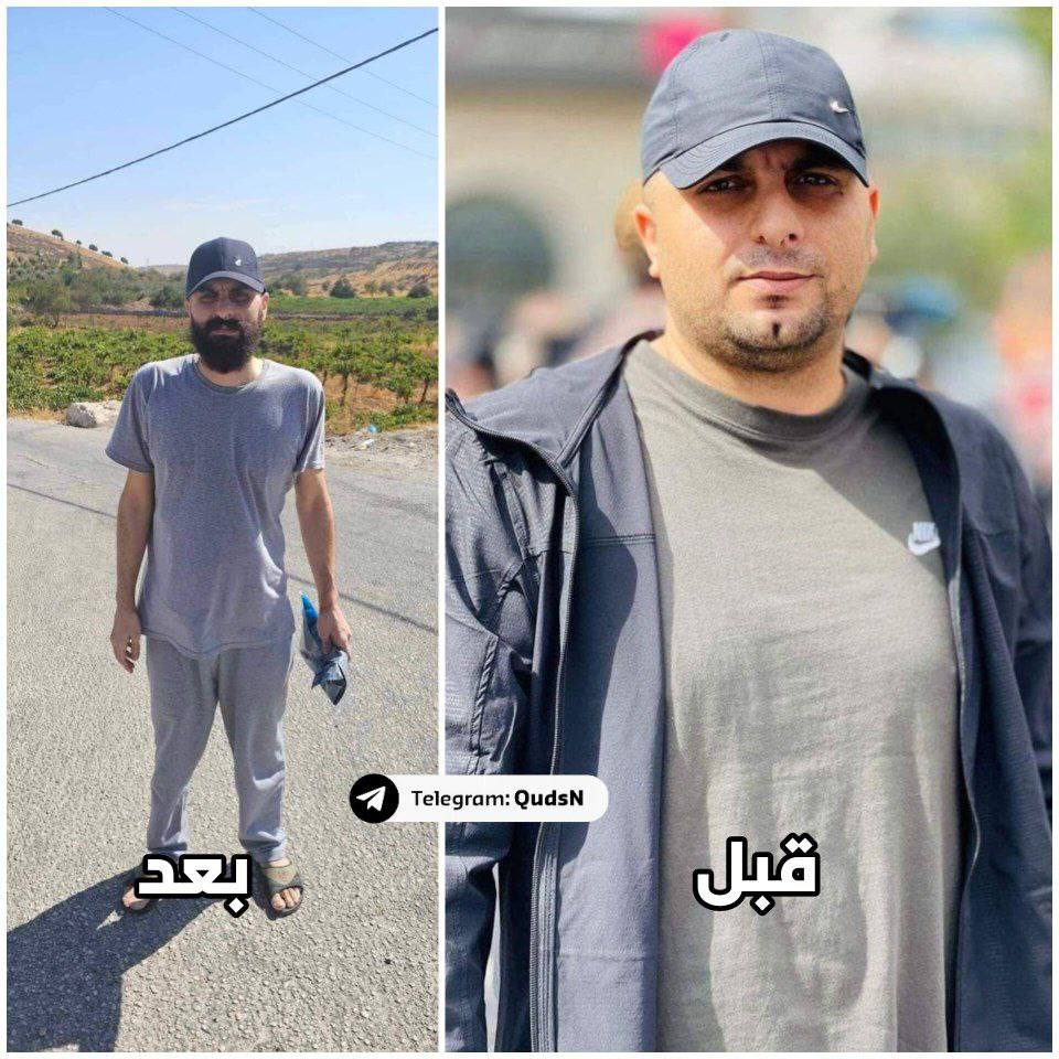 A comparison of his appearance before and after his release underscores the Israeli occupation’s starvation and neglect of thousands of Palestinians detained without charge or trial – Quds News Network.