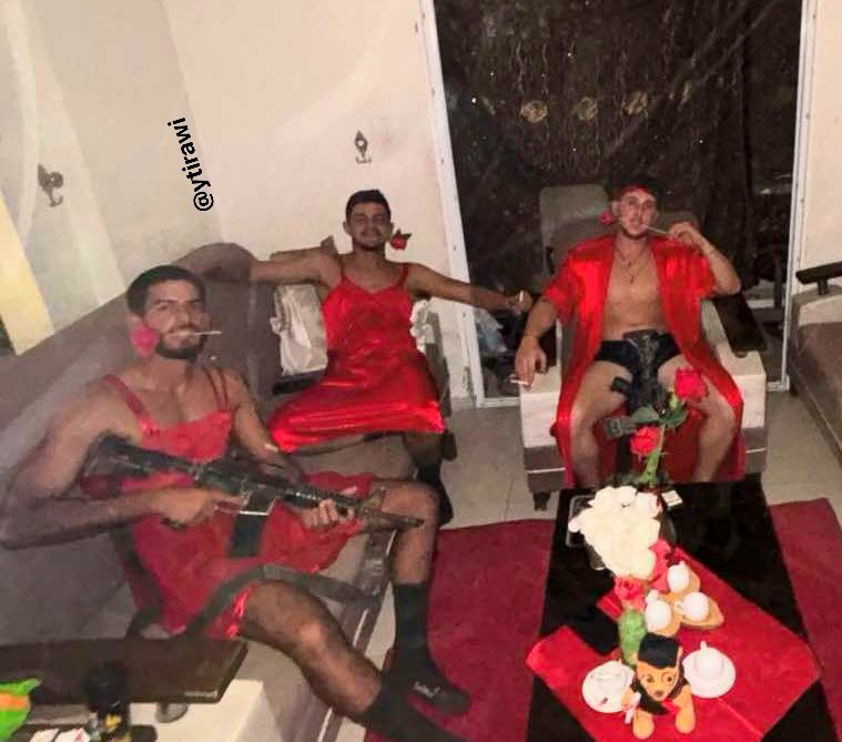 Israeli occupation soldiers posed for pictures wearing the lingerie of displaced Palestinian women in a house they raided in Gaza – Quds News Network.