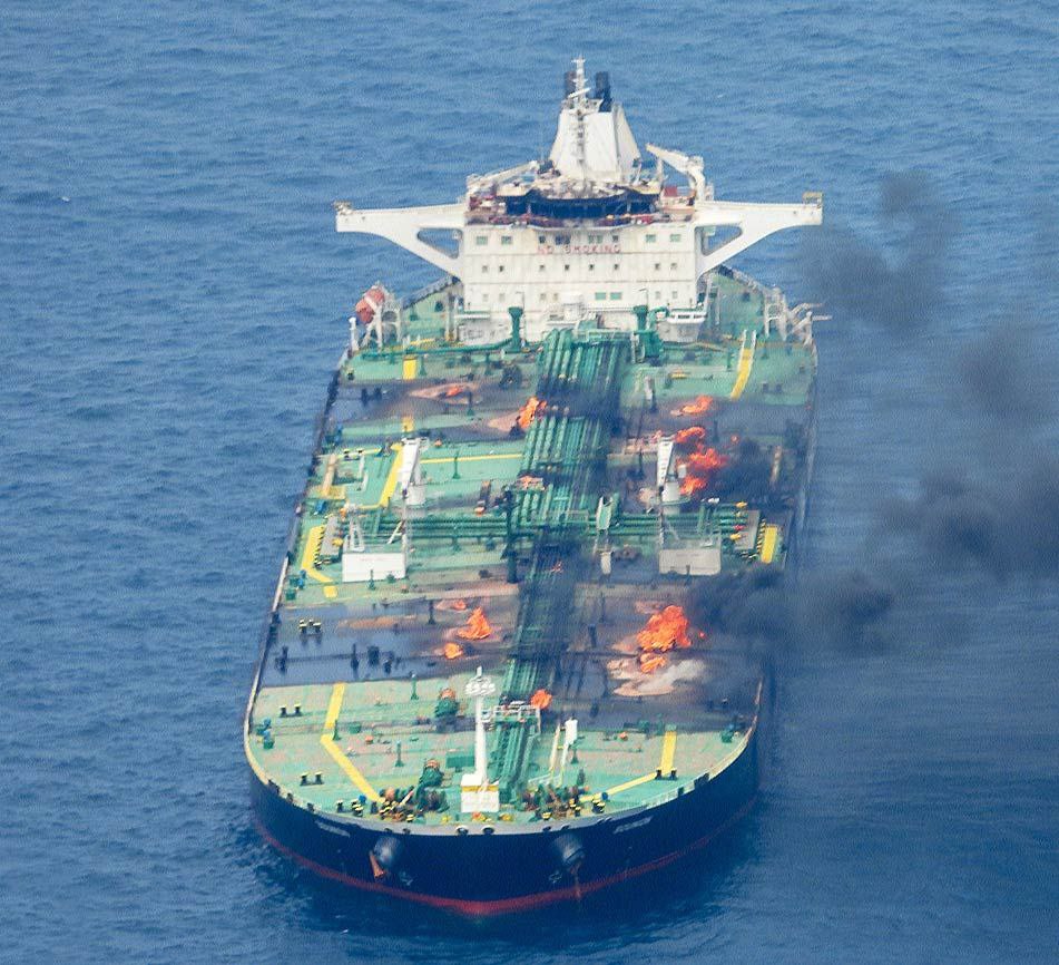 New photos of the oil tanker SOUNION, which is still burning six days after being targeted by the Yemeni Armed Forces in the Red Sea using drone boats, cruise missiles, ballistic missiles, and drones. The UKMTO reported moments ago that the ship is still drifting.