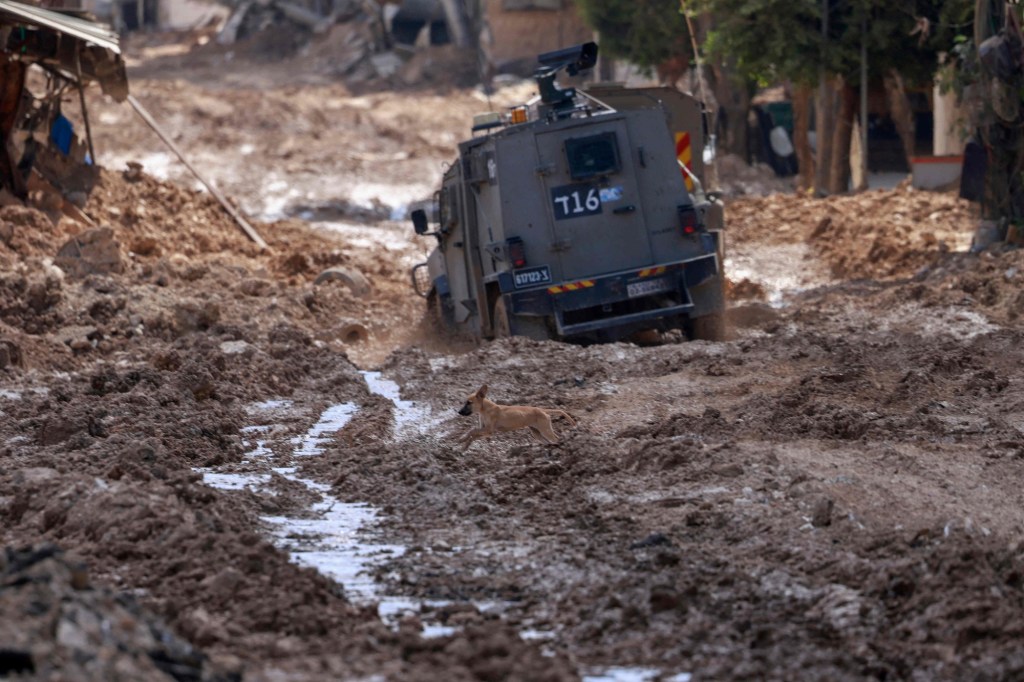 Israeli occupation soldiers indiscriminately fire at Palestinians as their vehicle gets stuck in streets destroyed by their own bulldozers at Al-Cinema roundabout in Jenin City – QNN Video.