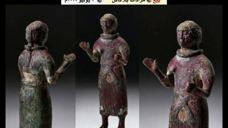 Yemeni antiquities expert Abdullah Mohsen revealed the sale of a 3,000-year-old Yemeni bronze statue. In a Facebook post, Mohsen explained that the statue, depicting a man from the first millennium BC, stands at only 13 cm tall and was sold at the Blackas Auction in London on July 3, 2023.