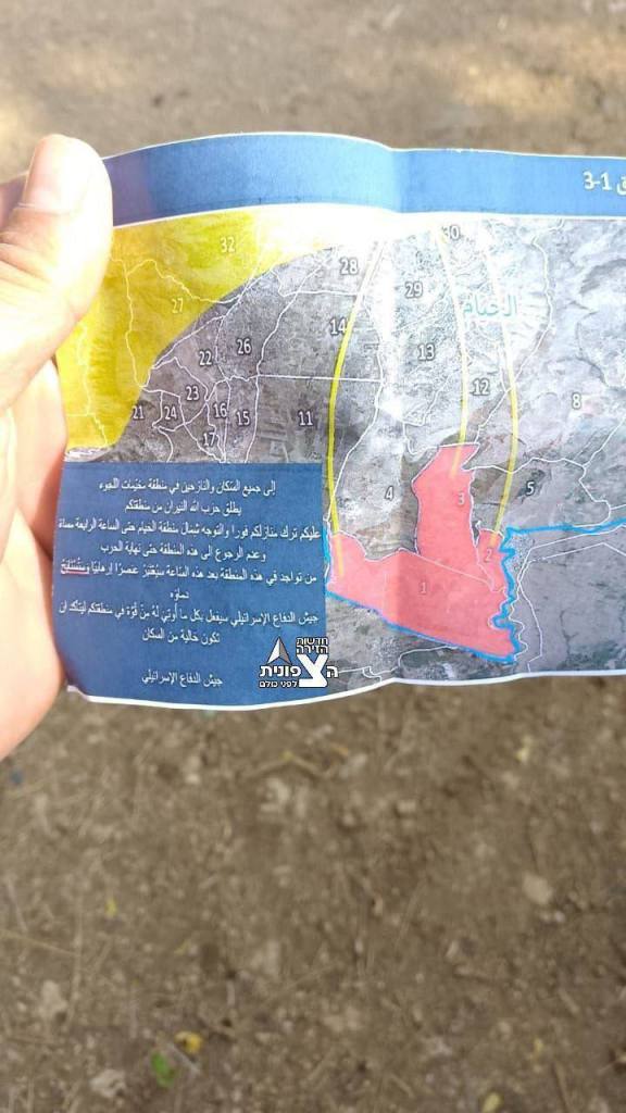 This morning, leaflets were dropped via a drone, demanding the evacuation of areas towards the north near Al-Wazzani village in southern Lebanon.