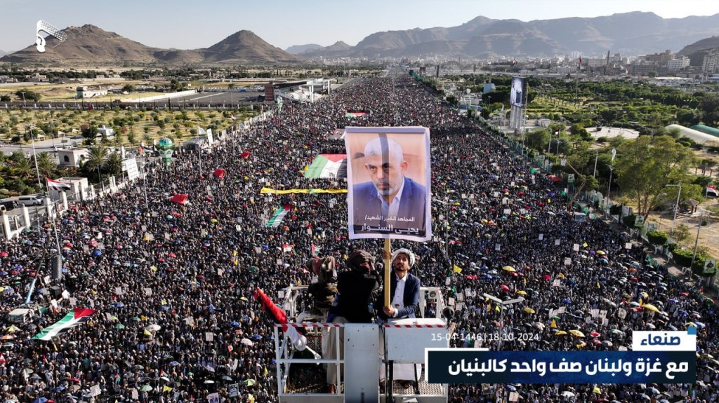 Millions of Yemeni have gathered under the slogan “with Gaza and Lebanon, one row like a building”.