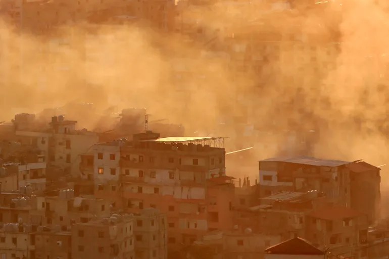 Early morning air strikes on the Lebanese capital have lit up the sky and smoke is billowing over Beirut city.