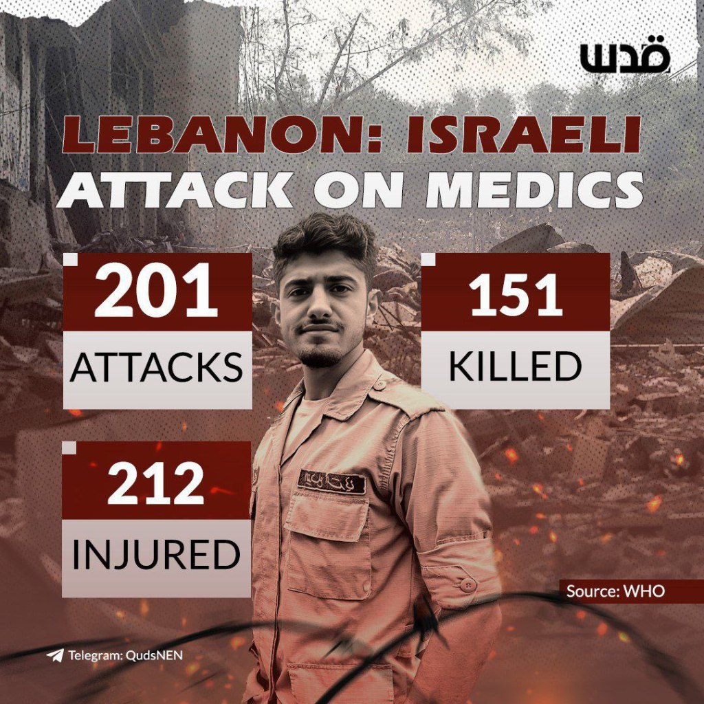 The World Health Organization says emergency medical services in Lebanon have reported 201 attacks over the past year since the start of the Israeli aggression on the country.