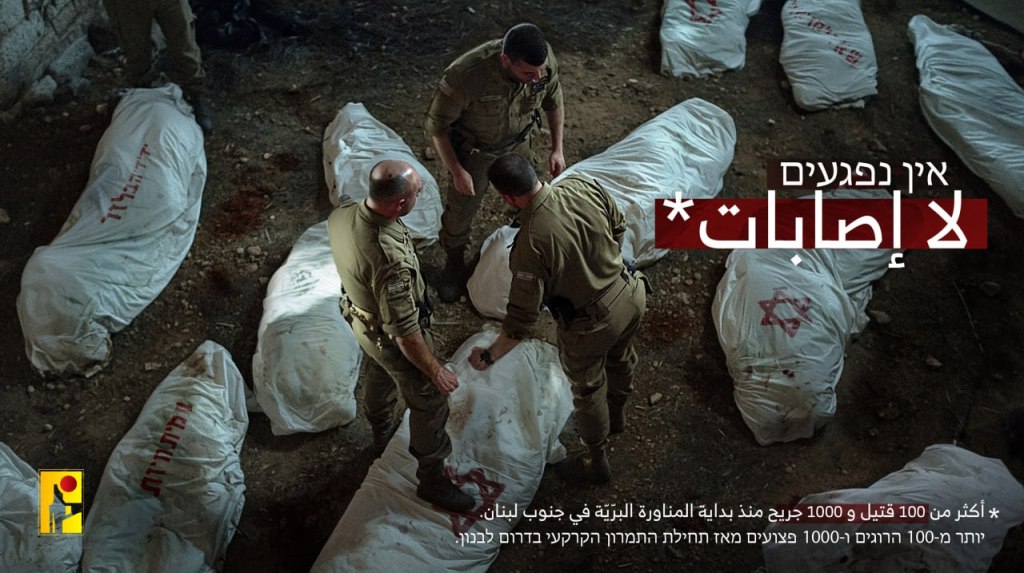 *Over 100 killed and 1,000 wounded since the beginning of the ground operation in southern Lebanon.” RNN