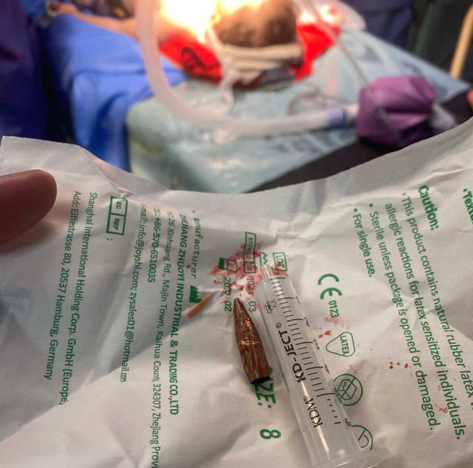 A bullet was extracted from a two-year-old wounded baby who was injured in a school sheltering displaced Palestinian families in Deir Al-Balah in central Gaza.