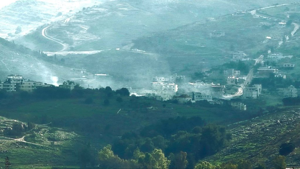 Enemy forces burn houses in the towns of Rab Thalatheen and Aitaroun.