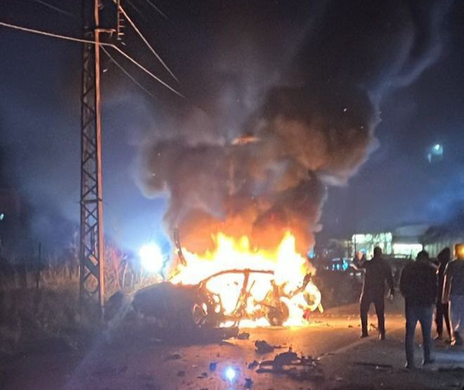 Three martyrs in a Zionist airstrike on a car in Yuhmor Al-Shaqif, South Lebanon, at 7:30 AM. Following the strike, IOF fired over 13 shells to prevent civilians and medics from approaching.