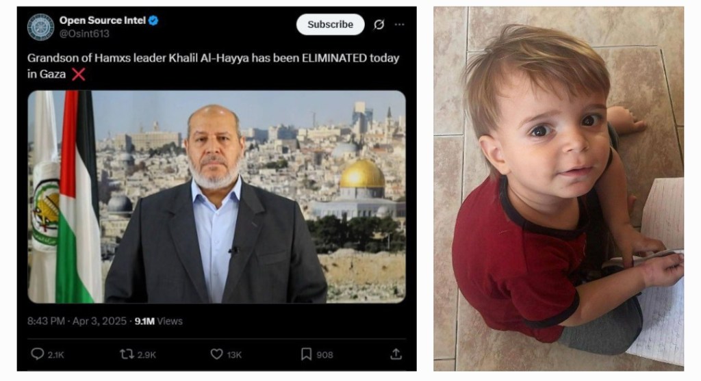 “Grandson of Hamxs leader Khalil Al-Hayya has been ELIMINATED today in Gaza ❌”