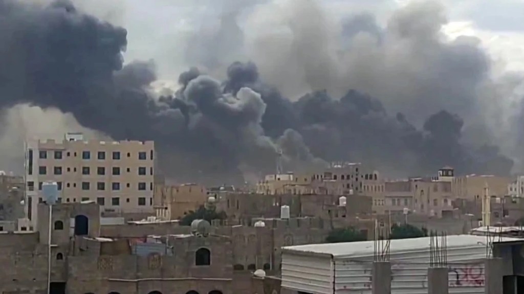 Large fires broke out in the Yemeni capital following Tuesday’s airstrikes.