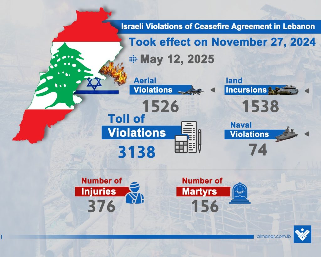 Since the ceasefire in South Lebanon took effect on November 27, 2025, the Zionist enemy violated the Lebanese sovereignty over 3138 times.