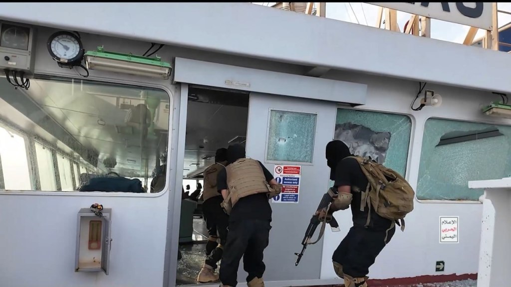 The “Eternity C” ship, sailing under the Liberian flag, sank after a Houthi attack off the coast of Yemen. Some crew members remain in the water after the ship sank, with five rescued so far. (Reuters)