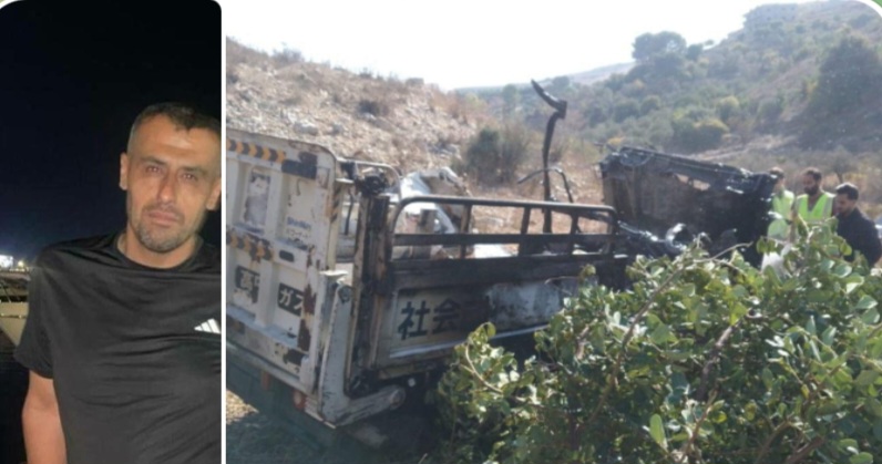 zionist colony drone targeted a pickup truck with missiles between Al-Sawana and Khirbet Selm in southern Lebanon, resulting in the ascension of a martyr.