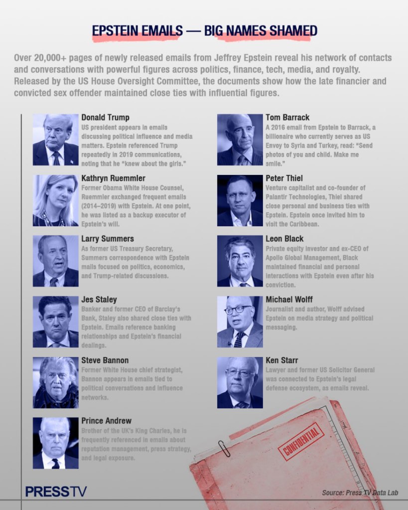 The latest batch from Epstein’s emails also illustrated the extraordinary scope of his contacts with powerful people, including Steve Bannon, an adviser to Trump in his first term, and Britain’s ex-prince Andrew.