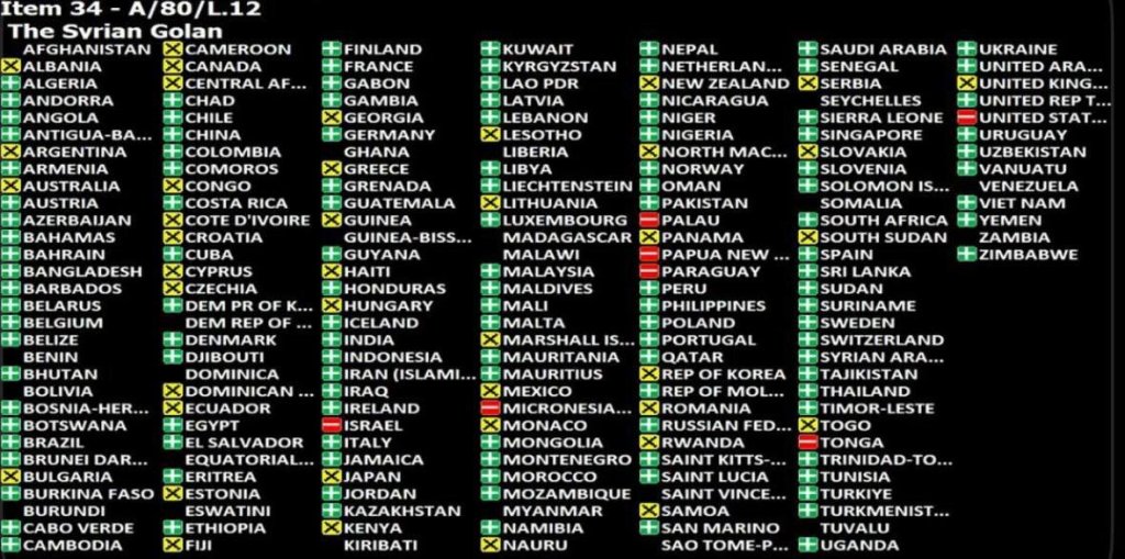 The UN General Assembly passes a resolution demanding zion¿st colony to withdraw from Syria’s Golan Heights, with 123 votes in favor, 7 against and 41 abstentions.