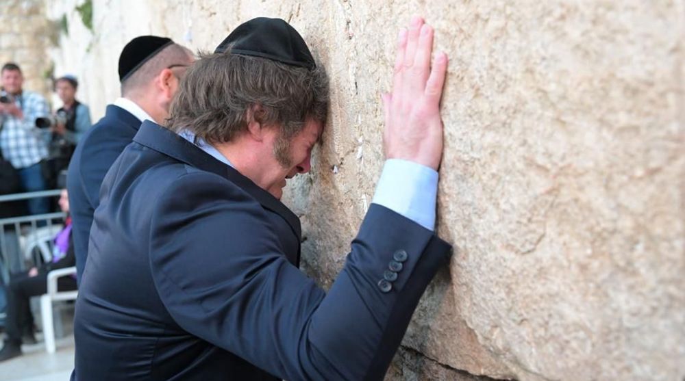 Argentine President Javier Milei bursts in tears at the Western Wall in occupied al-Quds. -